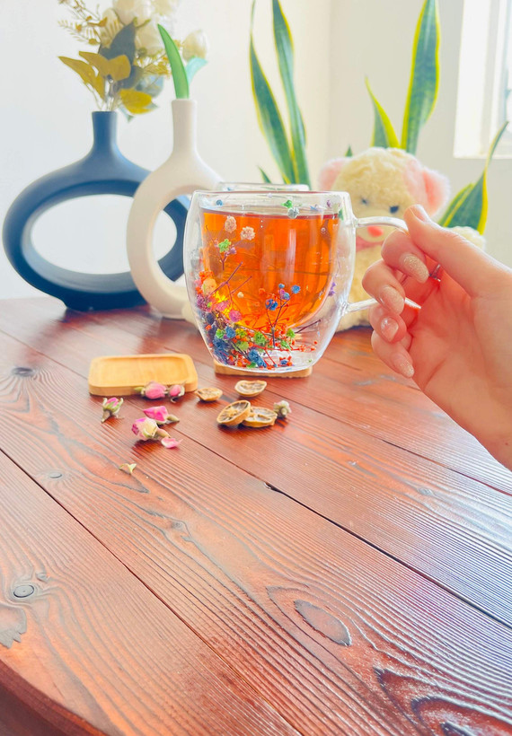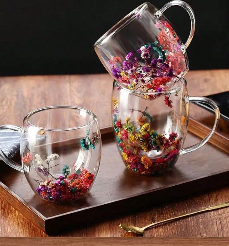 ماگ پیرکس دوجداره گل خشک طبیعی اورجینال
