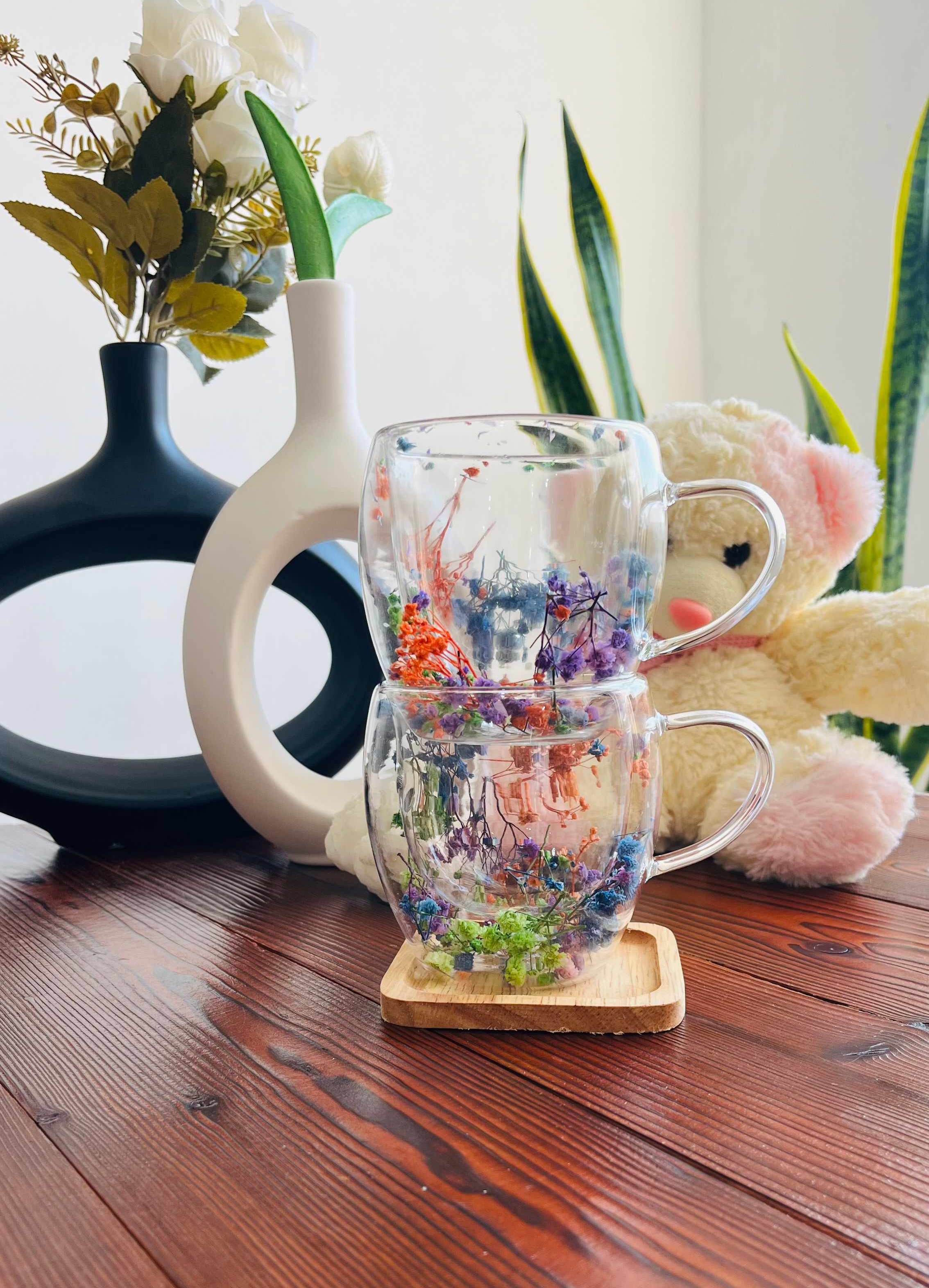 ماگ پیرکس دوجداره گل خشک طبیعی اورجینال