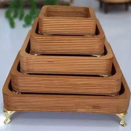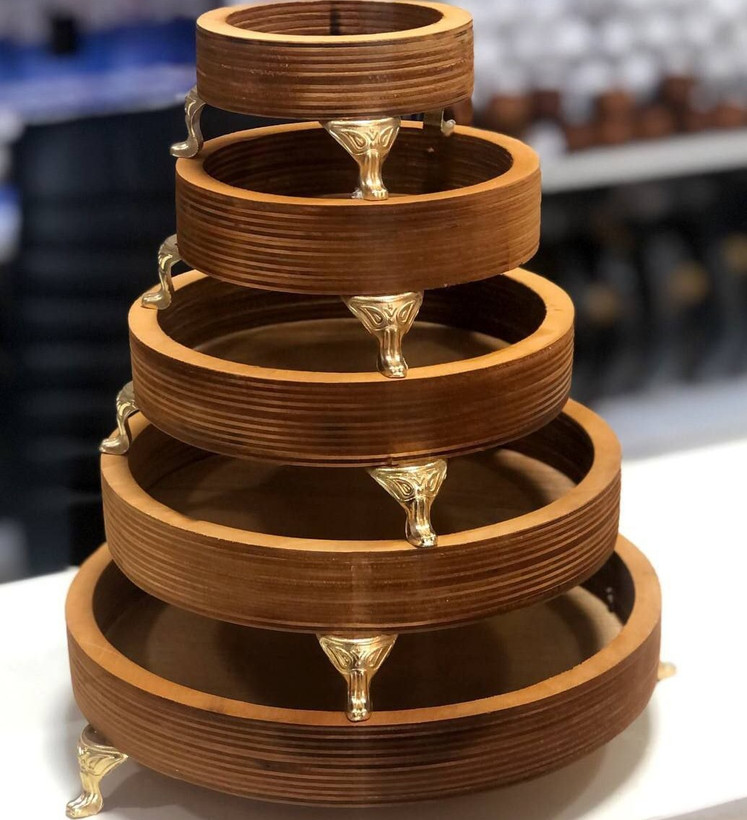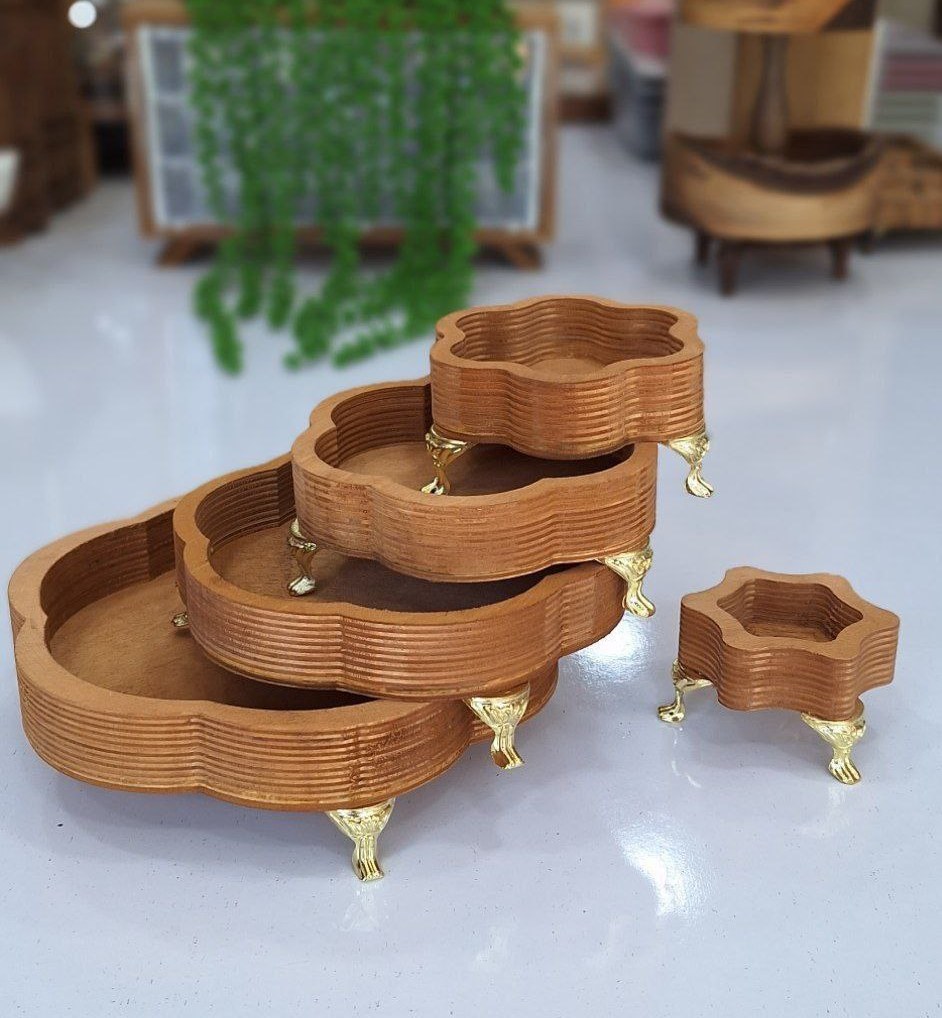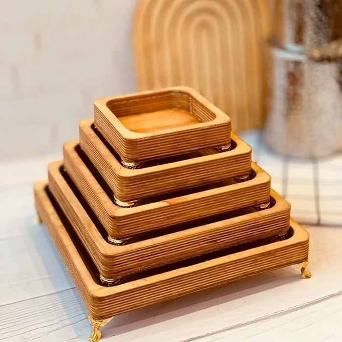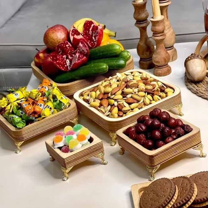 سینی سرو چوبی ۵ تکه پایه دار